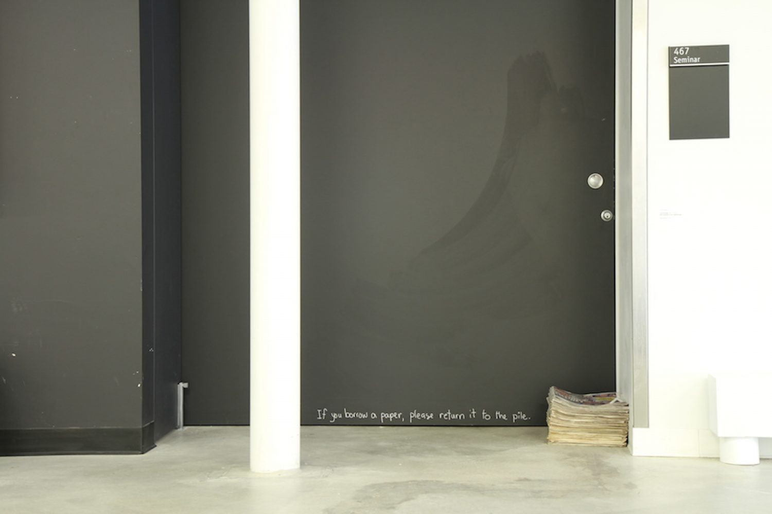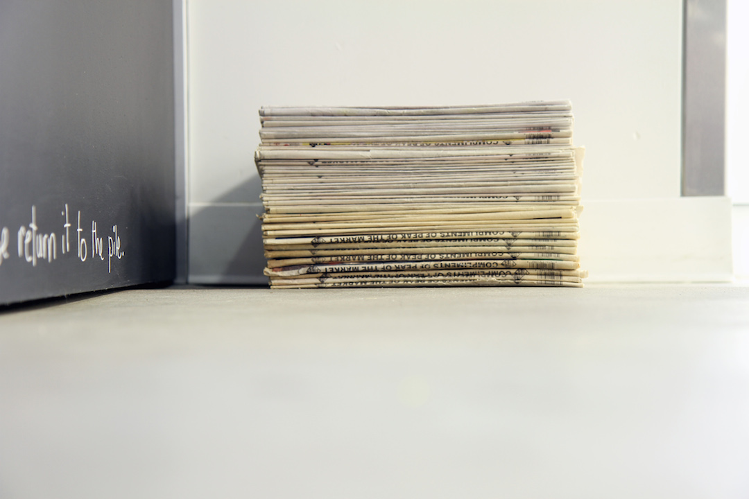 (The Progress of Our Relationship) Materials: newspapers, time.